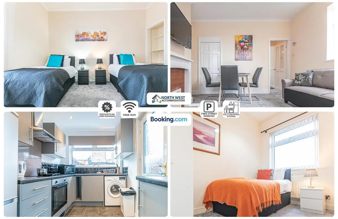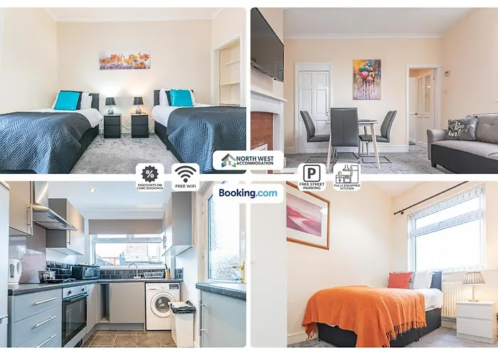 La propriété est équipée d'équipements indépendants, notamment d'une cuisine équipée et d'un coin repas pour le plaisir des clients. Il y a aussi une bouilloire électrique, un réfrigérateur et de la vaisselle disponibles dans la cuisine. Vous pourrez dîner à Chaplins, qui se trouve à 5 minutes de marche. L'aéroport de Manchester le plus proche est à 35 km de cette villa de 3 chambres.